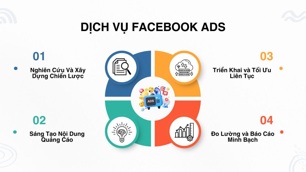 Khi bạn tìm đến một dịch vụ Facebook Ads uy tín, bạn không chỉ trả tiền cho việc “setup” chiến dịch. Bạn đang đầu tư vào một quy trình toàn diện, được thiết kế để mang lại kết quả kinh doanh cụ thể. Một gói dịch vụ chuyên nghiệp thường bao gồm các hạng mục cốt lõi sau: