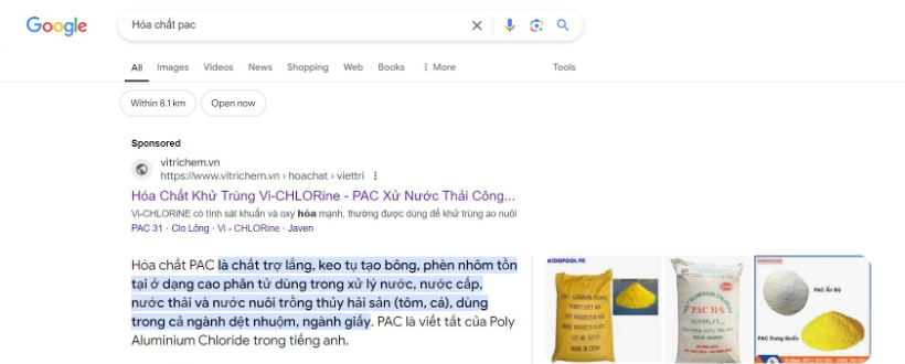 Đặc biệt, SEO từ khóa ngành hoá chất đã bắt đầu xuất hiện trên top Google, giúp Hoá chất Việt Trì tiếp cận trực tiếp các khách hàng có nhu cầu. Quảng cáo Facebook cũng mang lại lượng khách hàng tiềm năng ổn định, gia tăng cơ hội hợp tác kinh doanh.
