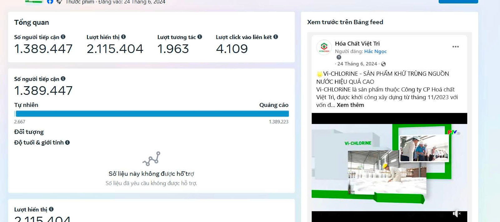Các bài quảng cáo đạt tiếp cận tới hơn 1,3 triệu lượt, chuyển đổi hiệu quả lượt mess quan tâm các sản phẩm với đối tượng B2B và B2C.